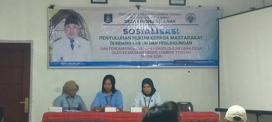 Desa Selong Belanak melaksanakan kegiatan Pendampingan Hukum Jaksa Pengacara Negara Dalam Pengelolaan Dana Selong Belanak Tahun 2025 pada tanggal 16 September 2025 yang dihadiri oleh Kepala Desa Selong Belanak , Ketua BPD Beserta Anggotanya,Sekretaris Desa, Pengurus Bumdes dan Operator Desa Selong Belanak .